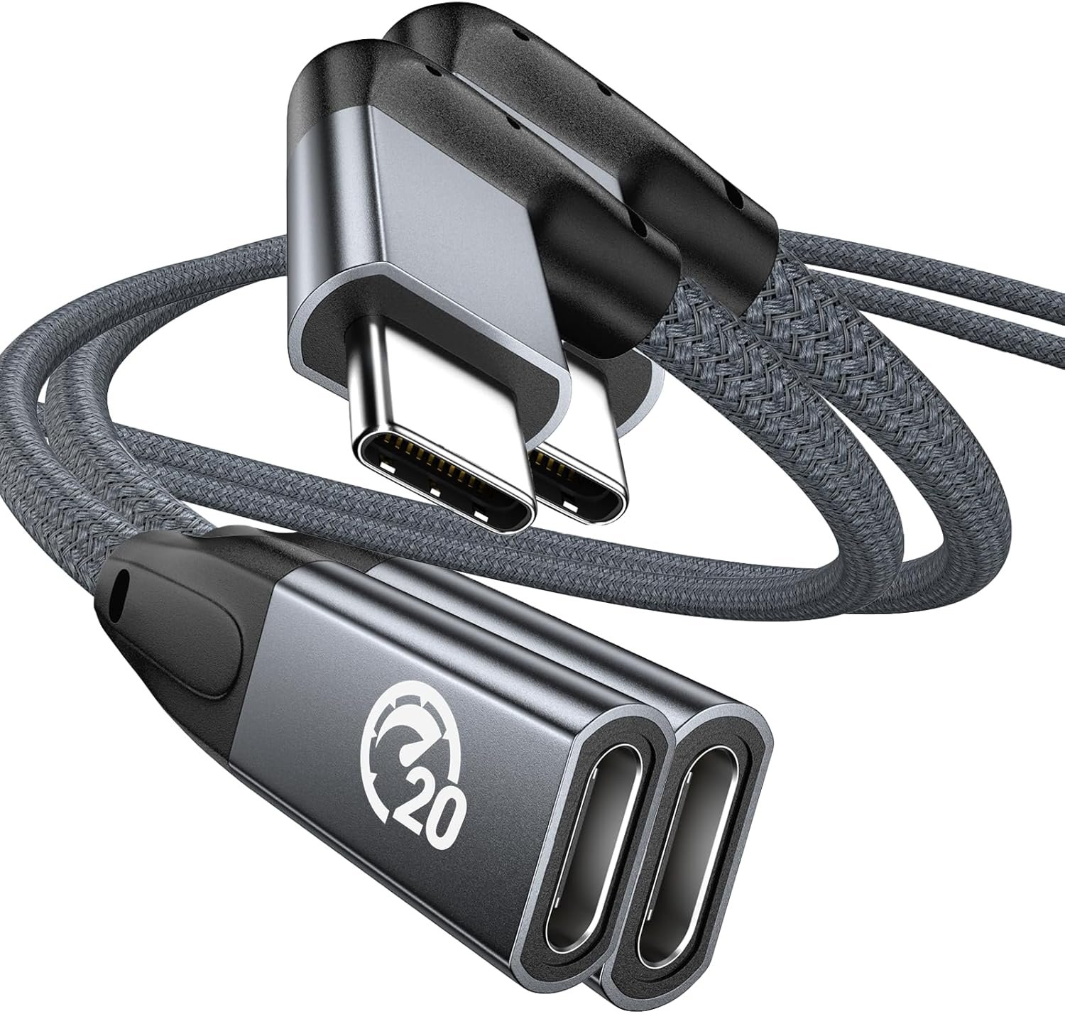 UseBean Right Angle USB C Extension Cable 1.6FT 2-Pack, USB-C 3.2 Gen2 20Gbps Male to Female 4K Video Cord, Compatible for MacBook Pro M4 M3, Dell XPS, Surface, Galaxy S25 S24, iPhone 16 15